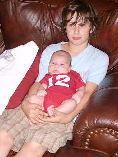 Football season is here and we are ready! Utah's team is the Cowboys this year! This is right before the first practice with pads, the other practices have been conditioning and boy has he been sore. Mom is all decked out in her Notre Dame gear!